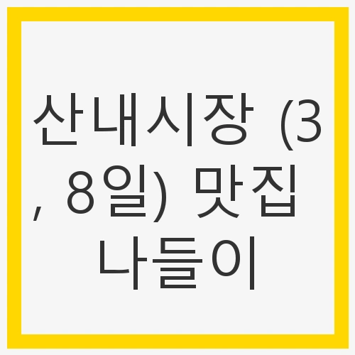 산내시장은 매달 3일과 8일에 열리며, 각 날짜에 맞춰 진행되는 다양한 행사와 특산물을 찾아볼 수 있습니다. 이 시장은 강원도 평창의 진부면에 위치해 있어, 인근의 아름다운 자연경관과 함께 방문하기에 최적의 장소입니다. 또한, 시장 주변에는 주차 공간이 마련되어 있어 편리하게 접근할 수 있습니다.