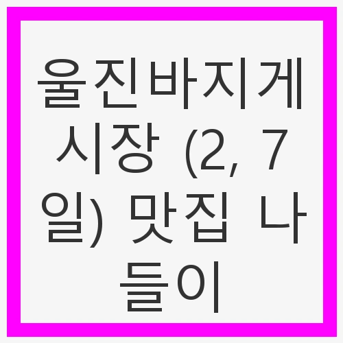 봄바람이 살랑살랑 불어오는 날, 많은 이들이 여행을 떠나고 싶어 하는 시점입니다. 특히 경상북도 울진은 아름다운 자연과 풍부한 역사로 가득 찬 도시로, 많은 이들이 찾는 이유가 있습니다. 이번에 소개할 곳은 울진의 자랑인 바지게시장입니다. 매월 2일과 7일에 열리는 오일장은 고유의 전통과 현대가 어우러지는 곳으로, 다양한 먹거리를 제공하는 전통시장을 통해 지역의 농산물과 해산물을 저렴하게 구매할 수 있는 기회를 제공합니다. 가족, 친구, 연인과 함께 즐길 수 있는 완벽한 나들이 코스입니다.