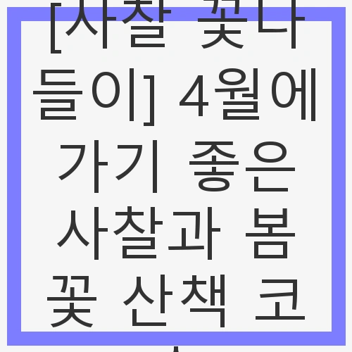 봄이 오면 많은 사람들은 꽃을 사랑하게 되고, 각종 꽃들이 만개하는 모습을 보며 마음이 따뜻해지는 경험을 하게 됩니다. 특히 4월은 봄꽃을 만끽할 수 있는 시기로, 사찰과 자연이 어우러진 아름다운 풍경을 즐기기에 최적의 시점입니다. 이번 글에서는 사찰에서 즐길 수 있는 봄꽃을 만나볼 수 있는 몇 가지 장소와 산책 코스를 소개하겠습니다. 많은 분들이 사찰에서의 고요한 정취와 함께 꽃의 아름다움을 누릴 수 있도록 돕고자 합니다.