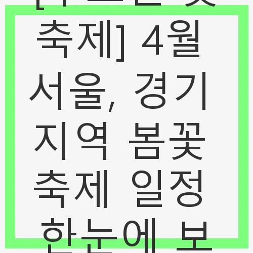 봄이 오면 따뜻한 햇살과 함께 만개하는 꽃들이 우리를 반깁니다. 특히 수도권 지역에서는 매년 4월이 되면 다양한 꽃축제가 열리며, 그 중에서도 벚꽃은 많은 이들의 사랑을 받습니다. 올해도 예외는 아니어서 서울과 경기 지역에서는 수많은 방문객들이 벚꽃을 즐기기 위해 모여들 것입니다. 이번 포스트에서는 수도권에서 열리는 봄꽃 축제의 일정과 장소를 한눈에 확인할 수 있도록 정리해 보았습니다. 가족, 친구, 연인과 함께 봄꽃을 만끽할 수 있는 기회를 놓치지 마세요.