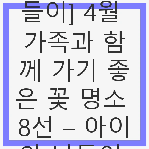 봄이 오면 꽃들이 만개하여 세상을 화사하게 물들이는 시간이 찾아옵니다. 특히 4월은 가족과 함께 나들이를 계획하기에 최적의 시점입니다. 따스한 햇살을 맞으며 아이와 함께 꽃구경을 나서는 것은 소중한 추억을 만드는 좋은 방법이죠. 이번 블로그에서는 4월에 가족과 함께 가기 좋은 꽃 명소 8곳을 소개해드리겠습니다. 아름다운 꽃들과 함께하는 행복한 시간을 만들어보세요!