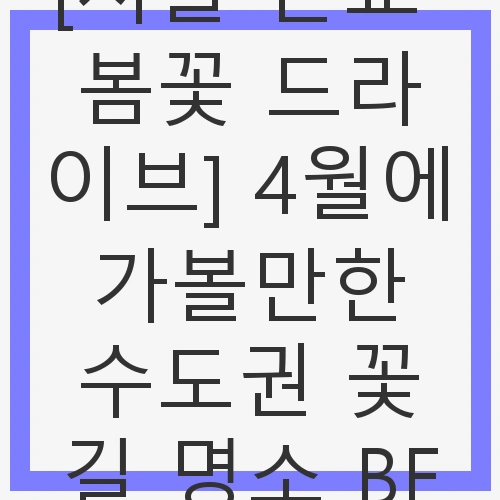4월, 따뜻한 햇살과 함께 찾아오는 봄은 꽃이 만개하는 시기입니다. 서울 근교에는 아름다운 꽃길이 많아 드라이브를 즐기기에 안성맞춤입니다. 이번 글에서는 4월에 가볼 만한 수도권 꽃길 명소를 소개합니다. 진달래, 벚꽃, 유채꽃 등 다양한 꽃들이 만발한 장소에서 봄의 정취를 만끽해보세요. 이곳들은 드라이브 코스와 함께 자연의 아름다움을 느낄 수 있는 최적의 장소입니다.