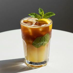 - 카누라테 + 얼음 + 민트 잎 + 레몬즙