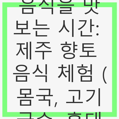 안녕하세요! 제주도 여행을 계획하고 계신가요? 제주 여행의 묘미 중 하나는 바로 그 지역의 전통 음식을 맛보는 것입니다. 제주 전통 음식을 맛보는 시간: 제주 향토 음식 체험 (몸국, 고기국수, 흑돼지 요리 등)에 대해 소개해 드리겠습니다. 제주도에는 깊은 역사와 문화가 깃든 다양한 음식들이 존재하며, 그중에서도 몸국과 고기국수, 그리고 흑돼지 요리는 특히 많은 사람들에게 사랑받고 있습니다. 이 글을 통해 제주 맛의 진수를 경험해 보세요!