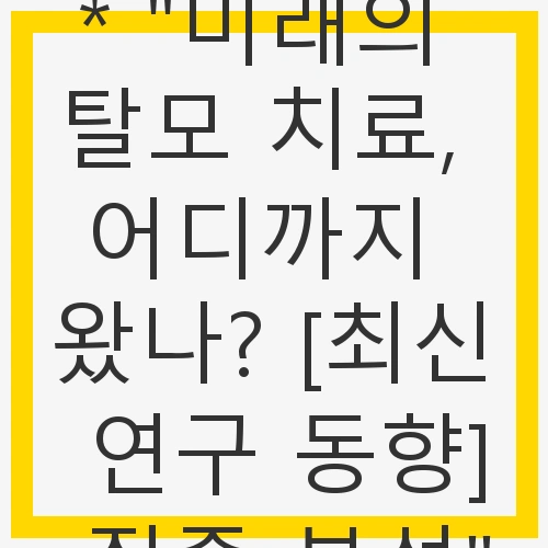 이번 글에서는 현재 진행 중인 최신 연구 동향을 살펴보며, 탈모 치료의 미래가 어떻게 변화하고 있는지를 집중 분석하고자 합니다. 특히, 최근의 과학적 발견과 혁신적인 기술들이 어떻게 탈모 치료에 적용되고 있는지를 자세히 살펴보겠습니다. 이렇게 함으로써 독자 여러분이 탈모 치료에 대한 이해를 높이고, 미래의 가능성을 엿볼 수 있는 기회를 제공하고자 합니다.