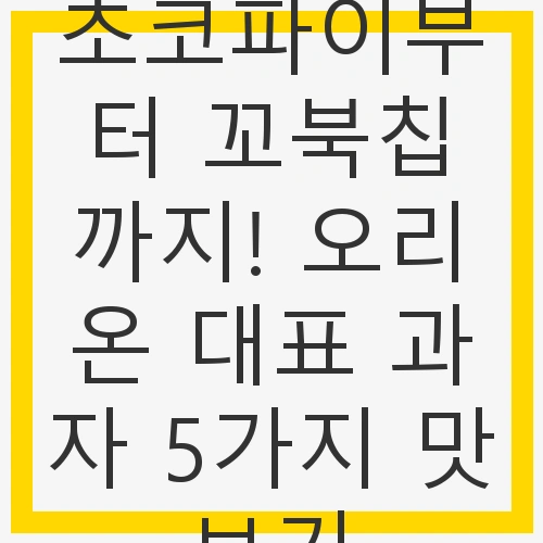 이번 포스트에서는 오리온의 대표 과자 5가지를 소개하면서, 각각의 특징과 매력을 살펴보겠습니다. 아마 여러분도 이 제품들을 한 번쯤은 드셔보셨을 텐데요. 그럼 본격적으로 과자들의 세계로 들어가 볼까요?