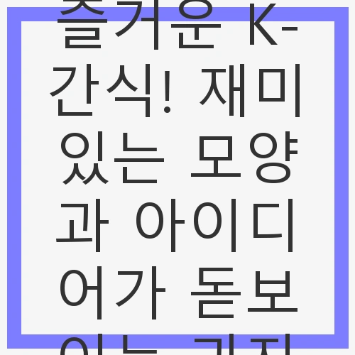 K-간식은 최근 들어 국내외에서 큰 인기를 끌고 있습니다. 한국의 전통 과자부터 현대적인 감각이 더해진 과자에 이르기까지 풍부한 선택지가 존재합니다. 특히, 재미있는 모양과 독창적인 아이디어로 만들어진 간식들은 주목받고 있으며, 친구나 가족과 함께 나눌 때 더욱 즐거움을 선사합니다. 이 글에서는 다양한 종류의 K-간식과 그 매력을 살펴보겠습니다.