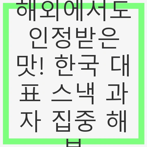 한국의 스낵 과자는 단순한 간식을 넘어, 문화의 상징으로 자리잡고 있습니다. 특히 요즘은 해외에서도 한국의 다양한 스낵 과자가 큰 인기를 끌고 있는 가운데, 그 맛과 품질에 대한 관심도 날로 증가하고 있습니다. 이러한 스낵 과자는 단순히 맛있는 간식일 뿐 아니라, 한국의 전통과 현대가 공존하는 매력을 담고 있습니다. 오늘은 해외에서도 인정받는 한국 대표 스낵 과자를 집중 해부해 보겠습니다. 각 스낵의 특징과 인기 비결을 통해 한국 스낵의 매력을 재조명해보도록 하겠습니다.