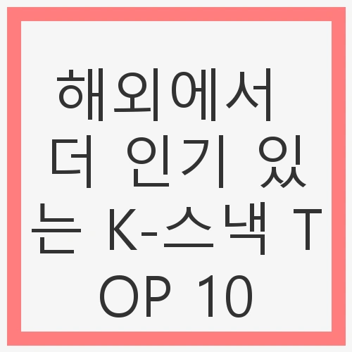 한국의 스낵, 즉 K-스낵은 최근 몇 년 간 해외에서 폭발적인 인기를 끌고 있습니다. K-팝과 K-드라마가 세계적으로 유명해지면서 자연스럽게 한국의 음식 문화도 세계인의 입맛을 사로잡고 있는데요. 특히, 다양한 맛과 독특한 식감으로 무장한 K-스낵은 많은 외국인들의 사랑을 받고 있습니다. 이번 포스팅에서는 해외에서 더 인기 있는 K-스낵 TOP 10을 소개해드리려고 합니다. 이 스낵들은 단순한 간식을 넘어, 한국 문화를 전파하는 중요한 매개체로 자리 잡고 있습니다. 그럼 어떤 스낵들이 있는지 함께 살펴보시죠!