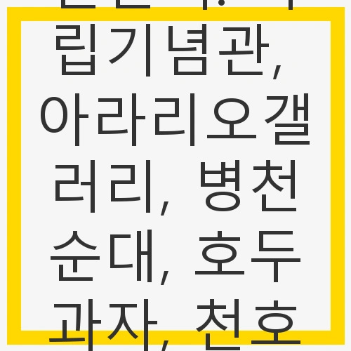 이번 포스팅에서는 천안의 주요 명소인 독립기념관과 아라리오갤러리, 그리고 천안의 맛을 대표하는 병천순대와 호두과자, 마지막으로 아름다운 천호지에 대해 소개하겠습니다. 이 글을 통해 여러분이 천안을 방문하고 싶은 마음이 더욱 커지기를 바랍니다. 천안은 단순한 여행지가 아닌, 여러분의 삶에 풍요로움을 더할 수 있는 특별한 장소임을 느끼게 될 것입니다.