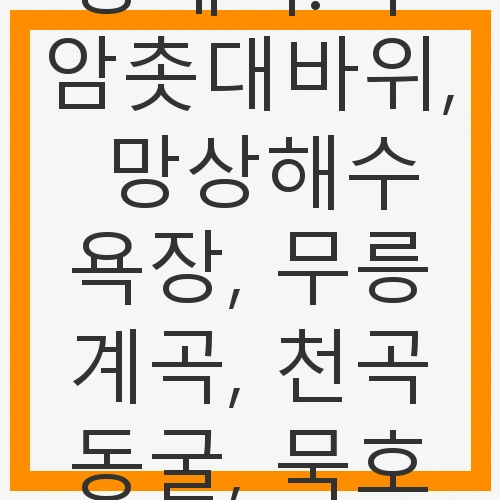 👉동해시: 추암촛대바위, 망상해수욕장, 무릉계곡, 천곡동굴, 묵호항 확인하기무릉계곡: 힐링의 장소