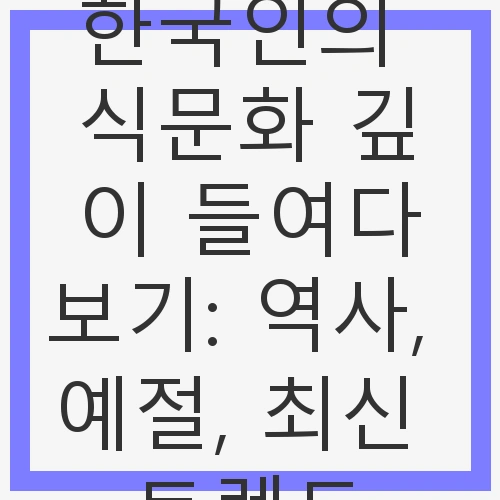 👉한국인의 식문화 깊이 들여다보기: 역사, 예절, 최신 트렌드 바로가기최신 트렌드: 한국 식문화의 변화