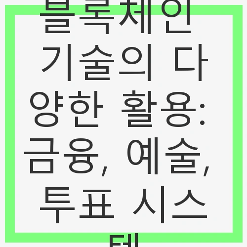 블록체인 기술은 암호화폐와 관련된 기술로 널리 알려져 있지만, 그 활용 범위는 훨씬 더 넓습니다. 이 글에서는 블록체인 기술의 다양한 활용에 대해 살펴보며, 금융, 예술, 그리고 투표 시스템에서의 혁신적인 변화를 집중적으로 다룰 것입니다. 블록체인은 데이터의 안전성과 투명성을 보장하여 여러 산업에 걸쳐 신뢰를 구축하고 있으며, 이는 앞으로의 사회와 경제에 큰 영향을 미칠 것입니다.