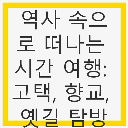 역사 속으로 떠나는 시간 여행은 단순한 여행이 아니라, 우리 자신을 돌아보고 과거의 소중한 가치를 다시금 생각해볼 수 있는 기회를 제공합니다. 고택, 향교, 옛길을 통해 우리는 우리의 뿌리를 찾고, 그 속에서 현대를 살아가는 지혜를 발견할 수 있습니다.